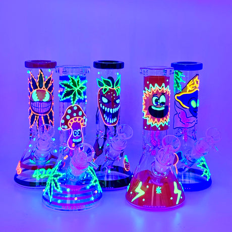 8" Glow In Dark Multi Design Becker Bong with 3D ART