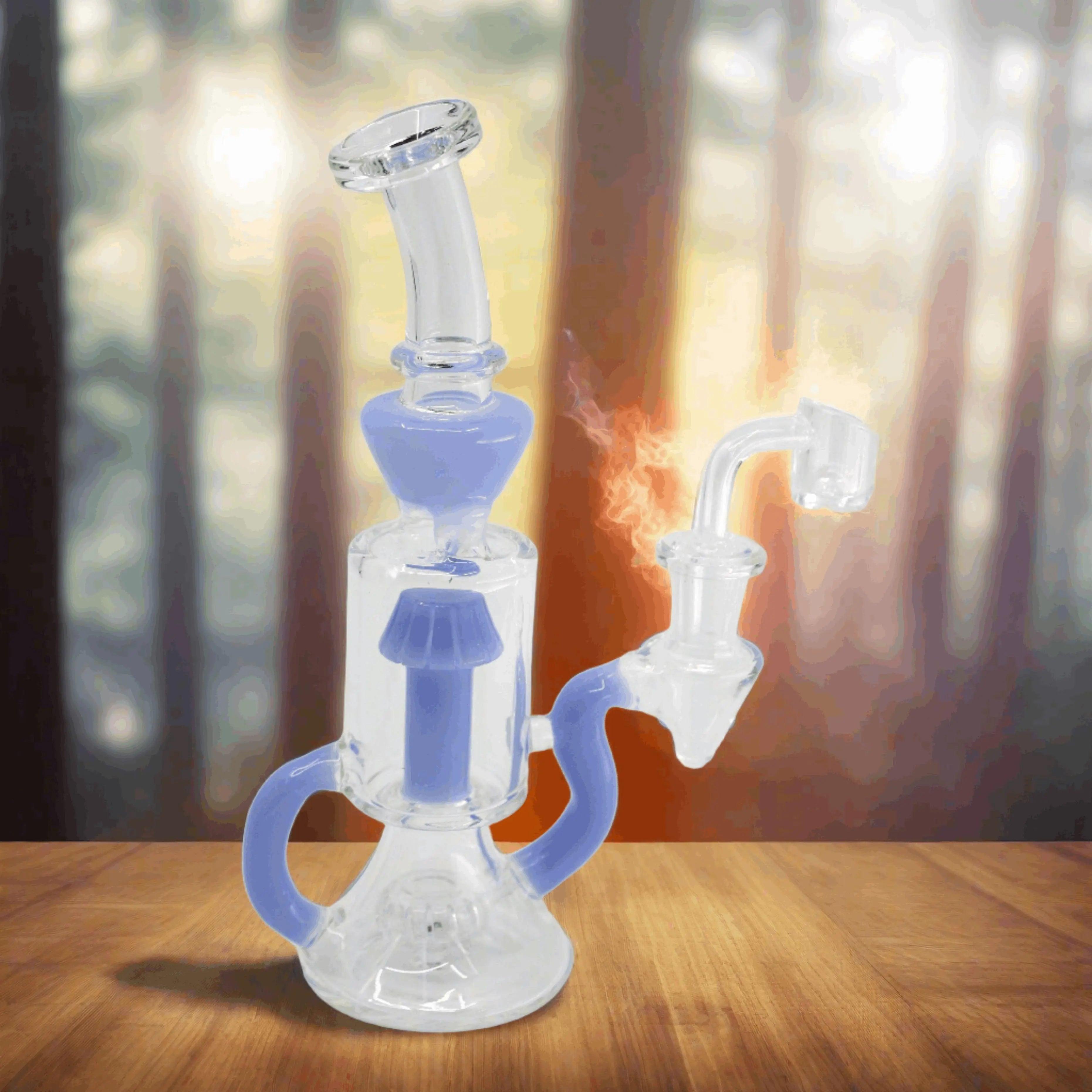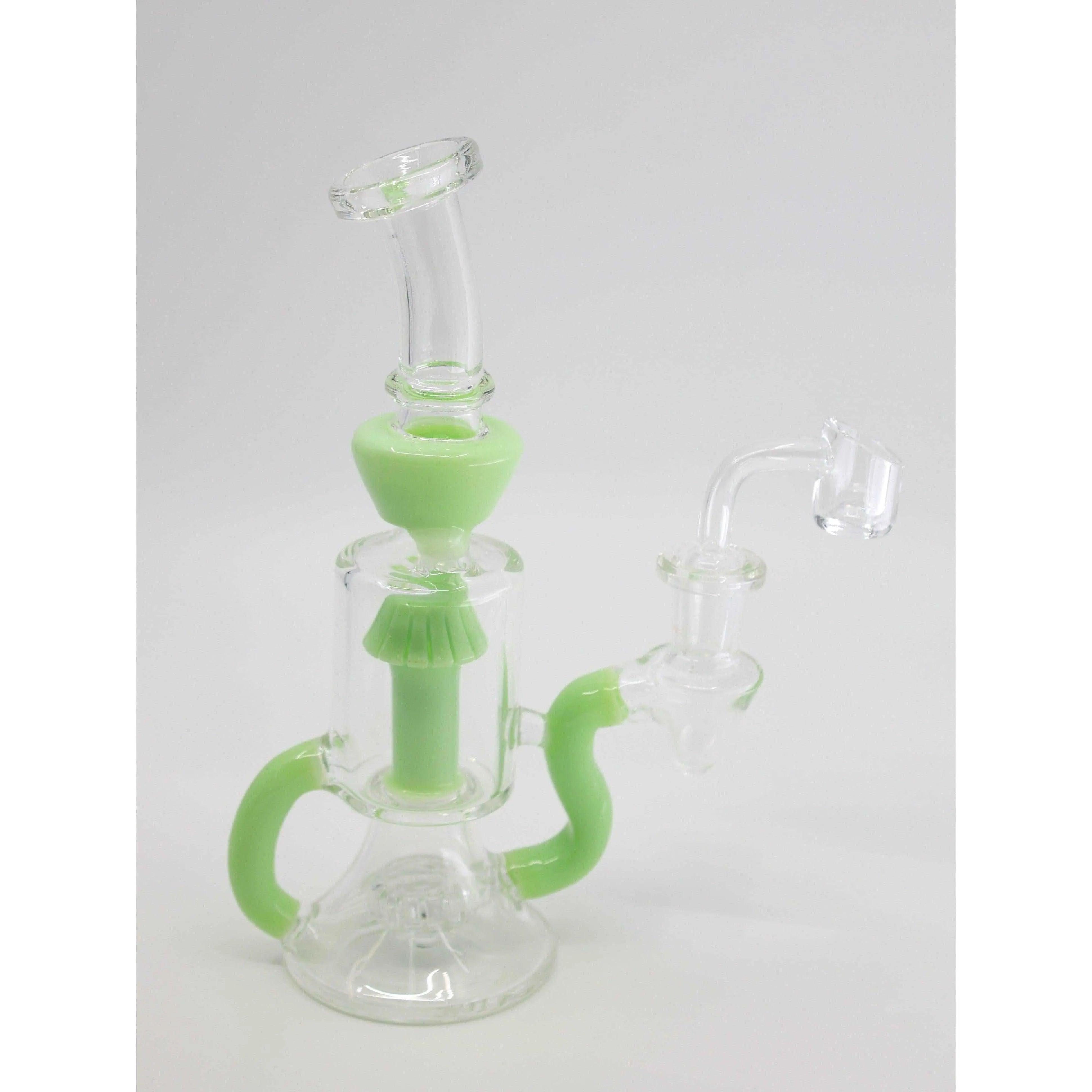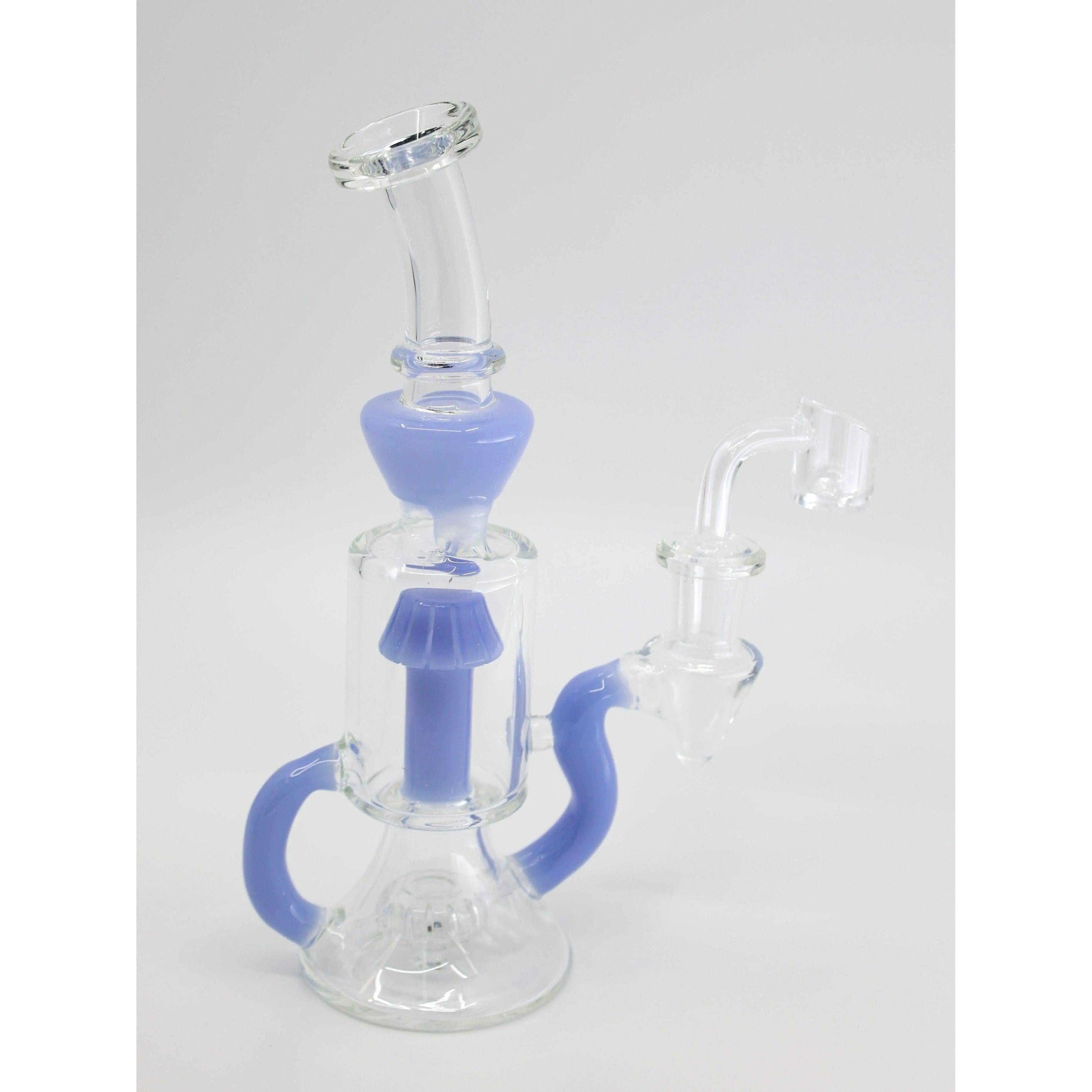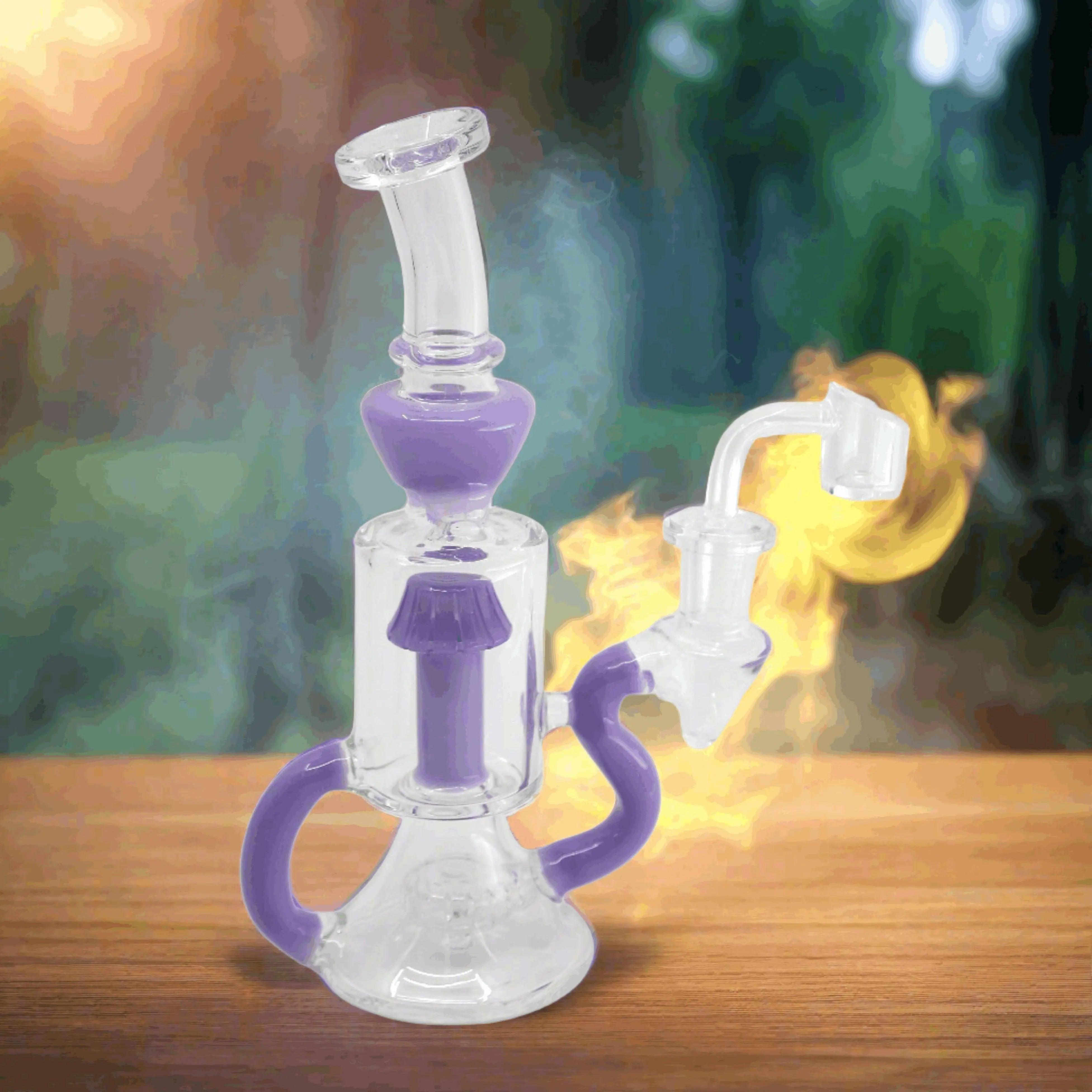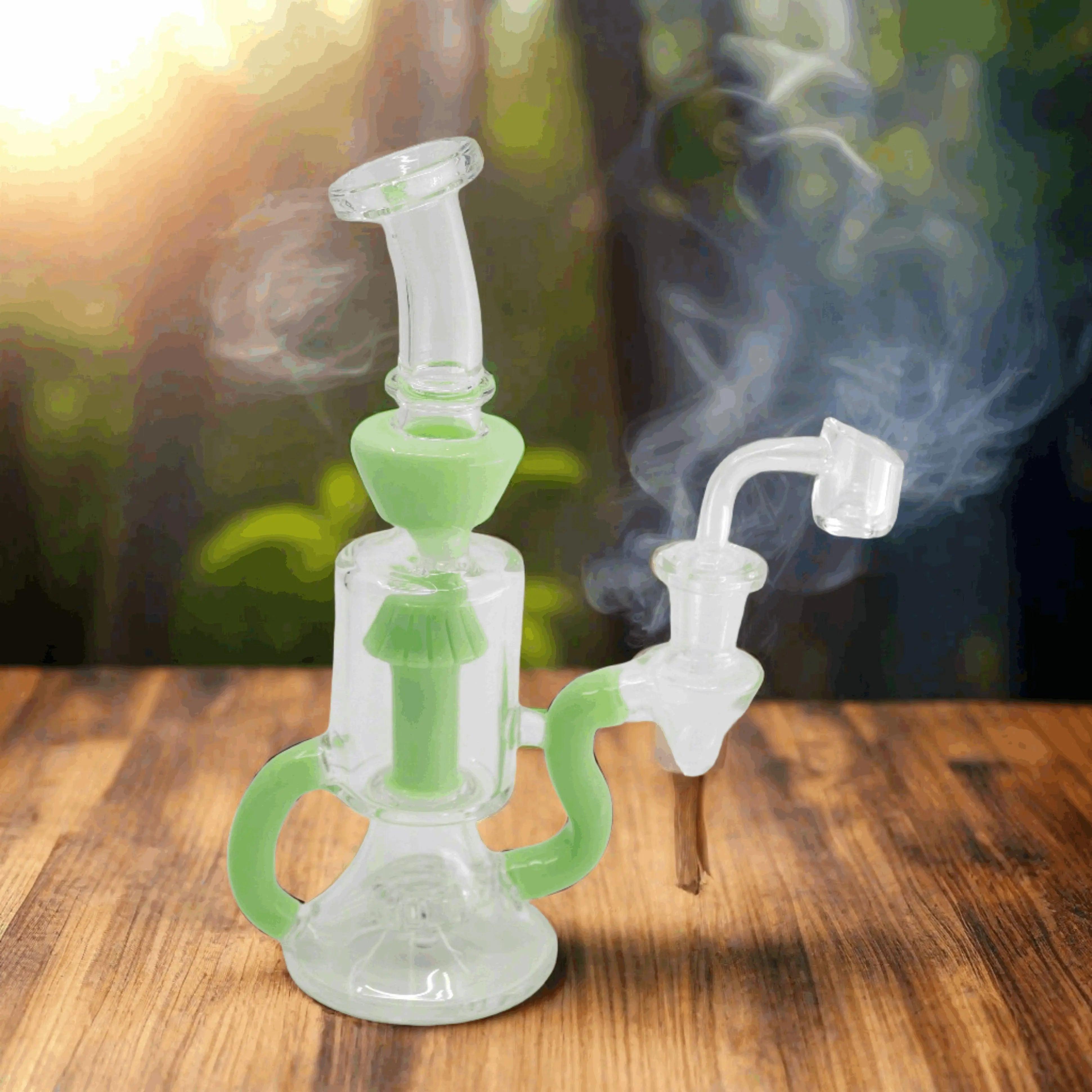 Inspired by the opulent beauty of Fabergé eggs, this recycler dab rig is a testament to the marriage of art and functionality. Measuring at a perfect 11 inches in height, it's crafted from premium borosilicate glass, ensuring both durability and heat resistance. The design is as much a work of art as it is a smoking device, making it a conversation piece in any collection.