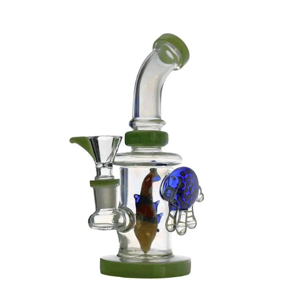 The unique fish perc design not only adds a touch of style to your smoking setup, but also provides smooth and efficient filtration for a clean and enjoyable hit every time. The bent neck design allows for a comfortable and easy smoking experience, while the metallic glass adds a sleek and modern touch.