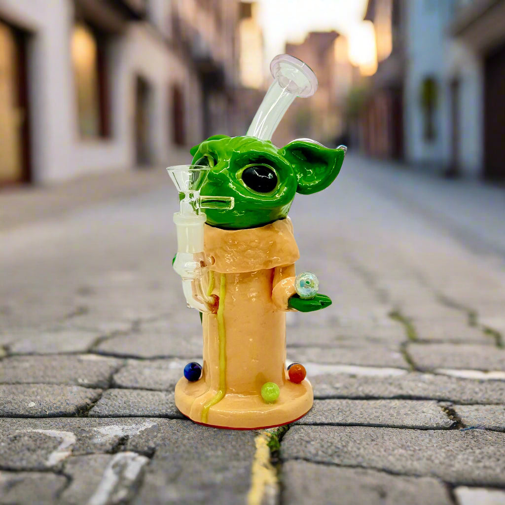 Step into a galaxy of smooth, flavorful dabs with the ALL NEW 8" Baby Yoda Heady Dab Rig! This meticulously crafted rig combines compact elegance with high-quality materials, ensuring each hit is as delightful as the masterpiece itself. With its stunning heady glasswork, this piece not only delivers exceptional performance but also transforms your collection into a conversation starter. Whether you're a seasoned connoisseur or just starting your dabbing journey, this rig brings both artistry and functionality to your sessions.
