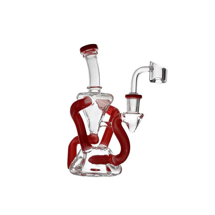 Appreciate smoking sophistication like no before with the Bent Neck Double Chamber Recycler Water Pipe Bong., standing at an ideal 8 inches. This premium bong features a double chamber recycler system, ensuring ultra-smooth and clean hits by optimizing smoke cooling and filtration. Its bent neck design offers a comfortable and ergonomic grip, while the high-quality borosilicate glass construction guarantees durability and heat resistance. Compact yet powerful, this sleek and modern water pipe is perfect for both travel and home use, making it a standout addition to any collection. Elevate your smoking experience with this stylish and functional piece that promises unmatched performance and aesthetic appeal.