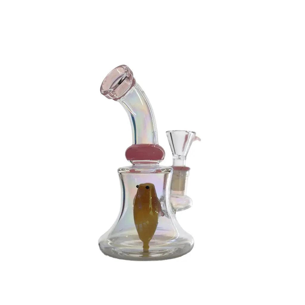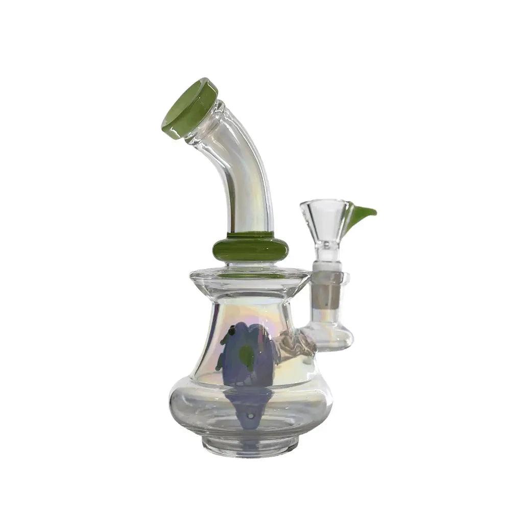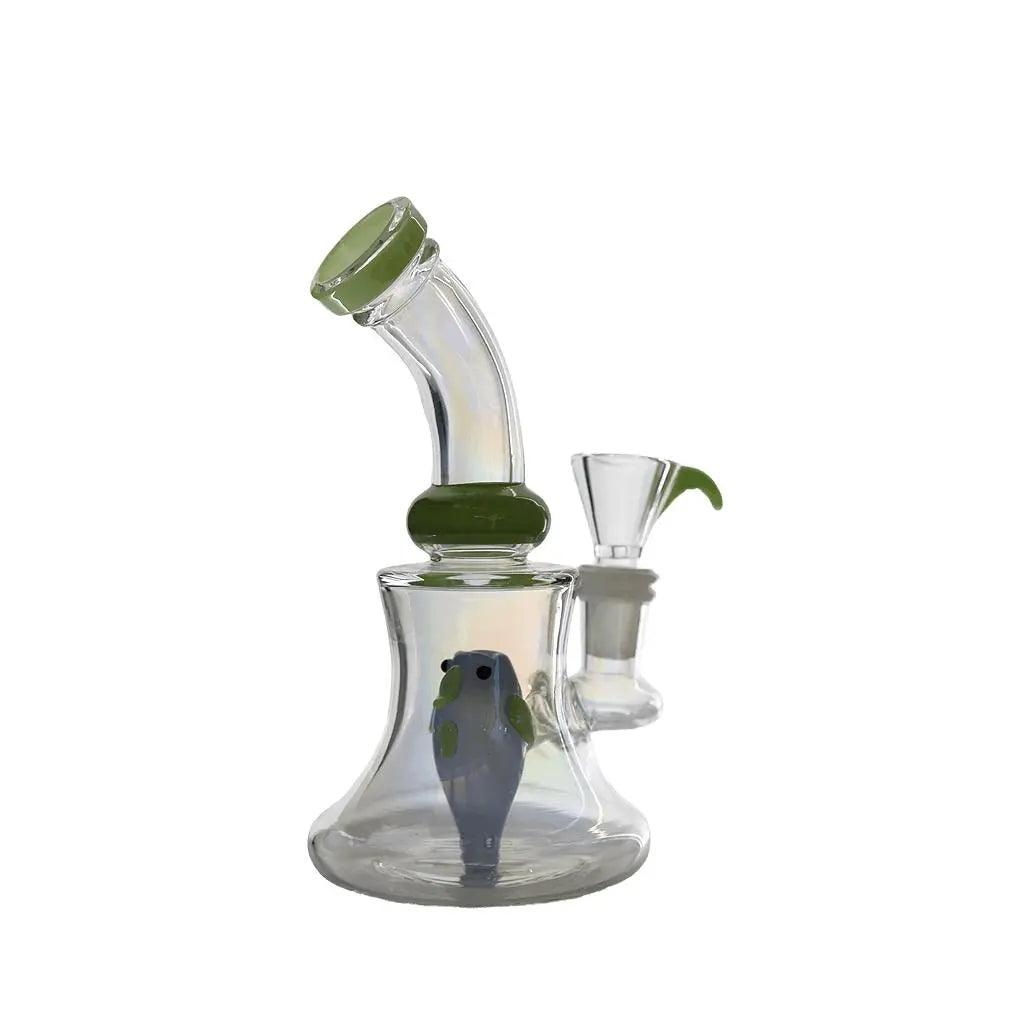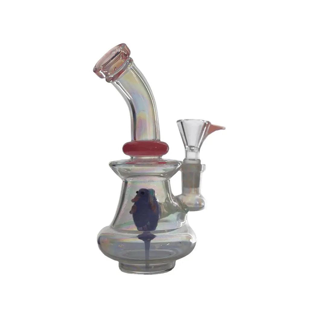 Crafted with high-quality borosilicate glass, this dab rig stands at 8 inches tall and features a unique angry bird insert design. The bent neck allows for a comfortable smoking experience, while the sturdy base ensures stability during use.