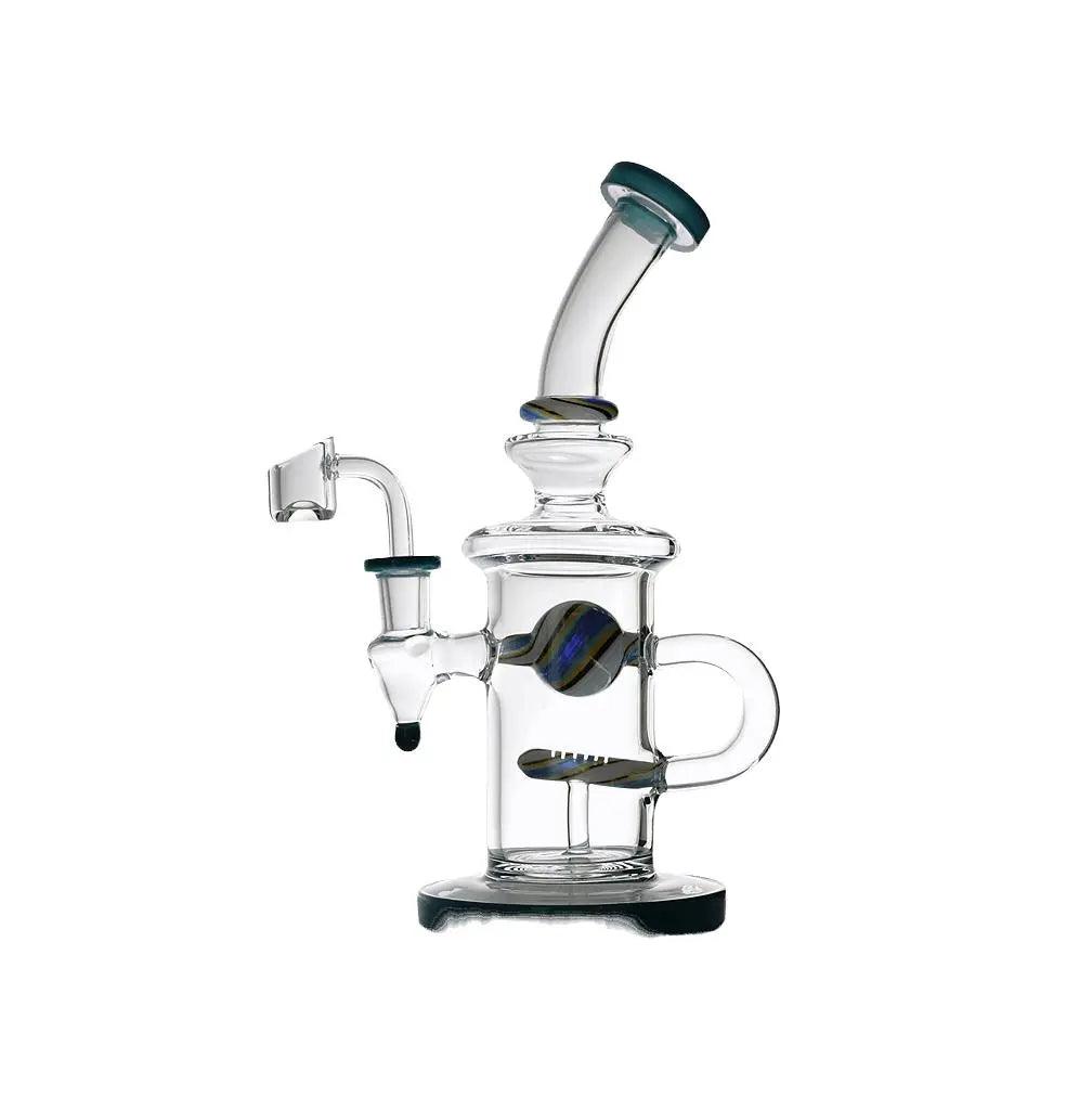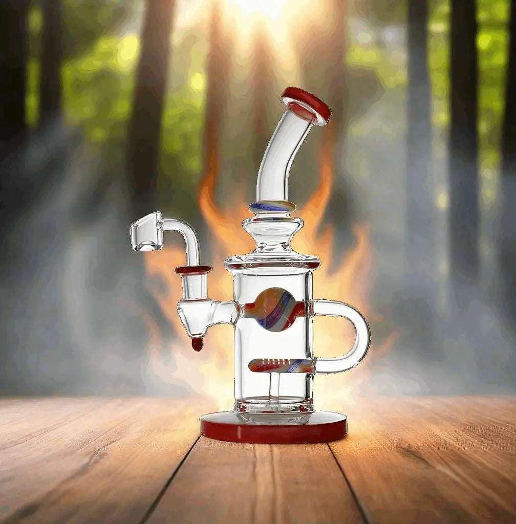 Utilize the Bent Neck Thick Crystal Glass Recycle Dab Rig to enhance your dabbing experience. Standing at 9 inches tall, this dab rig is crafted from high-quality, thick crystal glass for durability and a premium look. Its innovative recycler design ensures superior smoke cooling and filtration, providing smooth and clean hits every time. The bent neck not only adds an elegant touch but also reduces splashback and offers a comfortable smoking position. With its robust construction and clear crystal finish, this dab rig is both a functional and stylish addition to any collection. Designed for ease of use and maintenance, it features detachable parts for simple cleaning. Whether you're a seasoned enthusiast or new to dabbing, this rig offers a superior, reliable, and visually appealing experience.
