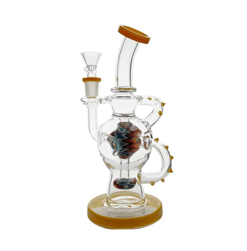 The 8.5-inch Hollow Base Cylinder Recycler Glass Water Pipe Dab Rig will enhance your dabbing experience. It is made of high-quality borosilicate glass, which is carefully constructed for durability and elegance. Its innovative hollow base cylinder design ensures efficient water recycling, providing superior filtration for cooler, smoother hits with every use. Ideal for concentrates, this rig preserves flavor and enhances your dabbing sessions. Equipped with a 14mm male quartz banger, it offers clean, pure vapor and is built for heat resistance. The ergonomic design ensures a comfortable grip, while the sturdy construction withstands regular use. Handle with care to avoid breakage, keep out of reach of children and pets, and always check connections before use to prevent leaks. Perfect for both seasoned dabbers and newcomers, the Hollow Base Cylinder Recycler Glass Water Pipe Dab Rig seamlessly combines functionality with stylish design, making it an essential addition to any collection.