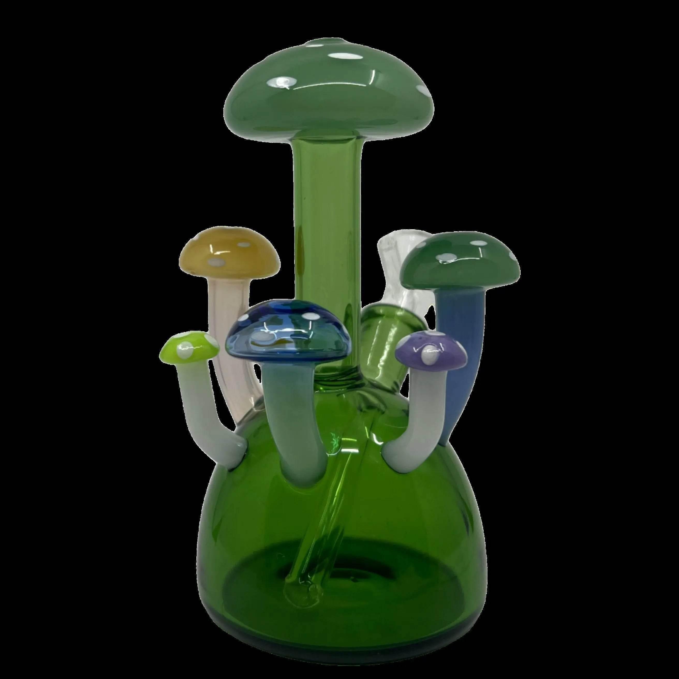 The Mushroom Head Rig - Dab Rig combines playful mushroom-inspired design with high-quality performance. Crafted from durable borosilicate glass, this rig features vibrant mushroom caps in various colors, adding a whimsical touch to your smoking experience. Equipped with a percolator, it ensures smooth, filtered hits with every dab.