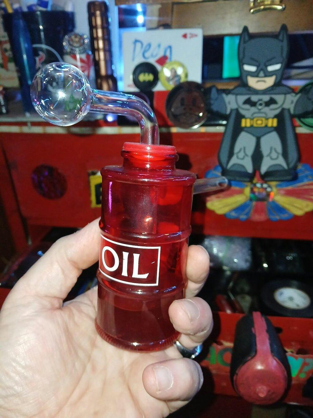 Oil Can Glass Oil Burner Bubbler Water Pipe - Novelty Drum Rig - Red is backordered and will ship as soon as it is back in stock.