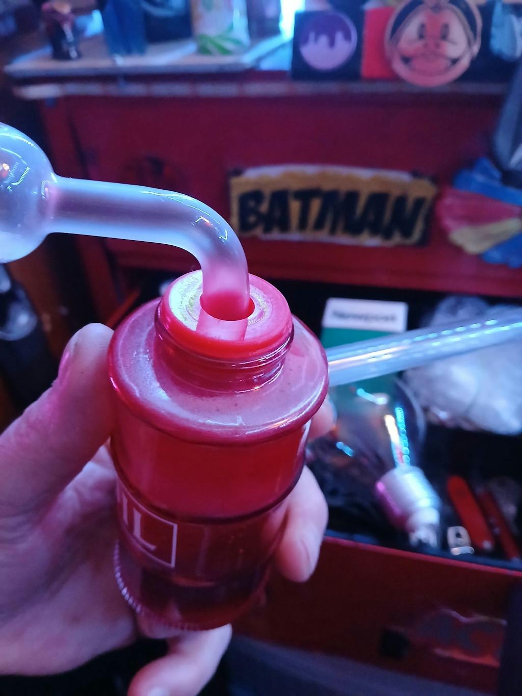 Why use a boring pipe when you can use one that fits the theme? The Oil Can Bubbler is designed to "fuel" your day with clean, filtered hits. The heavy-duty rubber grommets ensure an airtight seal for the glass stems, giving you consistent airflow and suction. Whether you choose the vibrant Red, Green, or Blue model, the translucent glass allows you to see the water bubbling inside, adding to the visual satisfaction of your session. It is small enough to be a great travel companion but holds enough water to function like a larger rig.