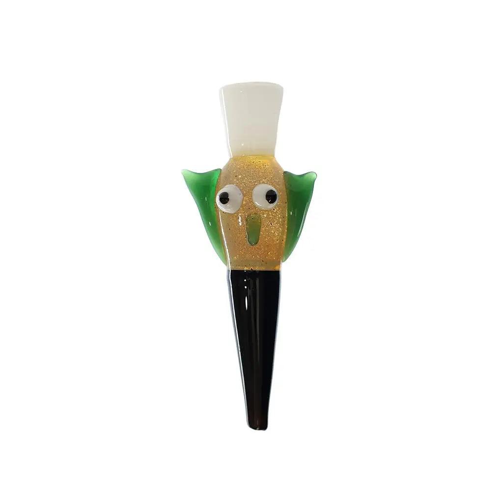 This hand pipe is a unique and eye-catching addition to any smoking collection. Measuring 5 inches in length, it is the perfect size for on-the-go use or for a quick smoke break. The pipe is made of high-quality glass and features a charming owl design with colorful ears. Each pipe is handmade, ensuring that no two are exactly alike.